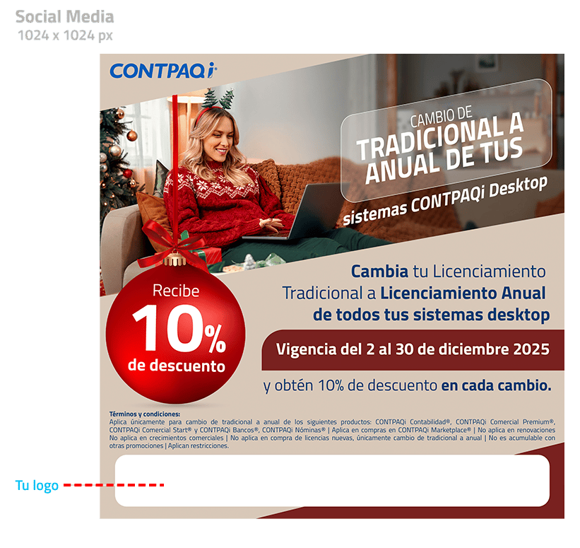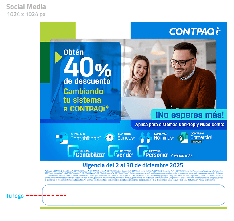 Pieza de redes mostrando cómo hacer uso de la imagen de CONTPAQi® en compañía de la propia. Los archivos están en .ai en capas y .jpg
