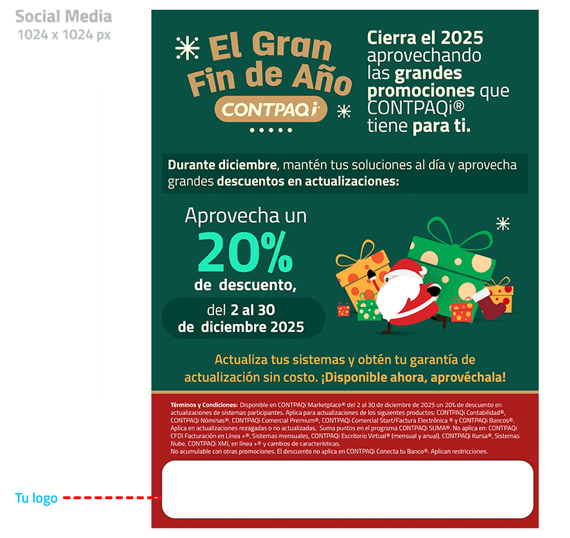 Piezas promocionales de mailing y redes mostrando cómo hacer uso de la imagen de CONTPAQi® en compañía de la propia. Estas son las únicas piezas autorizadas para uso del logo de Santander. Los archivos están en .psd en capas y .jpg