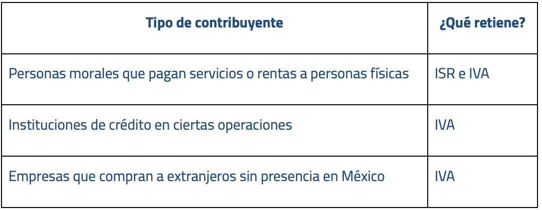 La persona moral actúa como recaudadora del SAT, reteniendo el impuesto y entregándolo al fisco en su lugar.